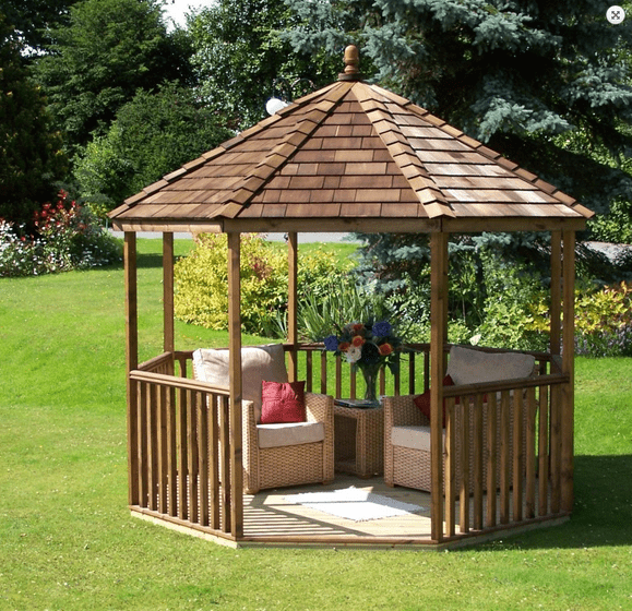 50x50mm tanalised floor joists, octagonal tanalised floor, 7 spindled sides, moulded handrail and polyester roofing felt.